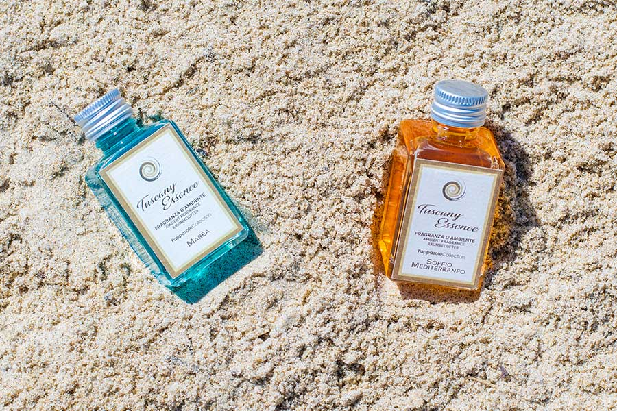 Qui ti aspettano anche le fragranze ambiente “Marea” e “Soffio Mediterraneo” della Tuscany Essence Pappasole Collection: naturali ed eco-friendly, racchiudono tutto il profumo dell’estate sulle spiagge toscane.