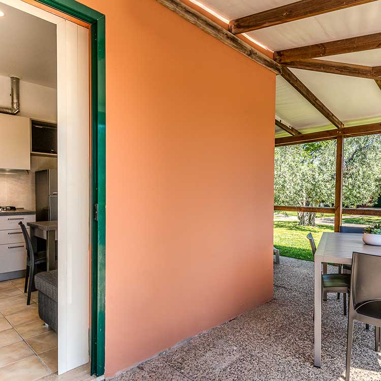 I Bungalow Prestige o i Mobilhome Premium sono dotati di veranda con cancellino, perfetti anche per gli amici a 4 zampe.