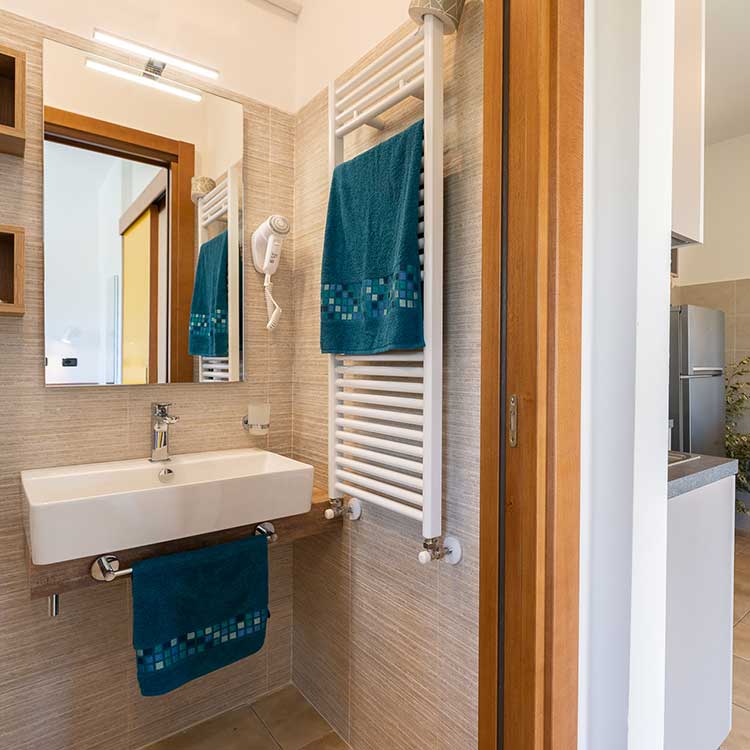 I bagni dei nostri alloggi sono comprensivi di tutti i sanitari (bidet, wc e lavandino).