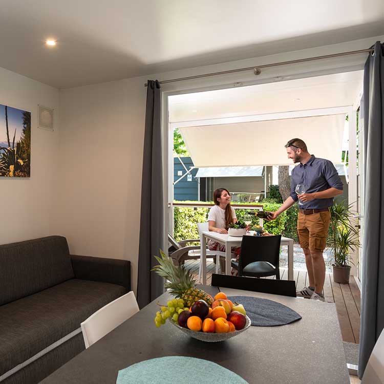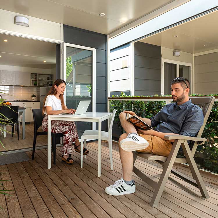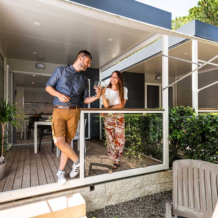 I Bungalow Prestige o i Mobilhome Premium sono dotati di veranda con cancellino, perfetti anche per gli amici a 4 zampe.