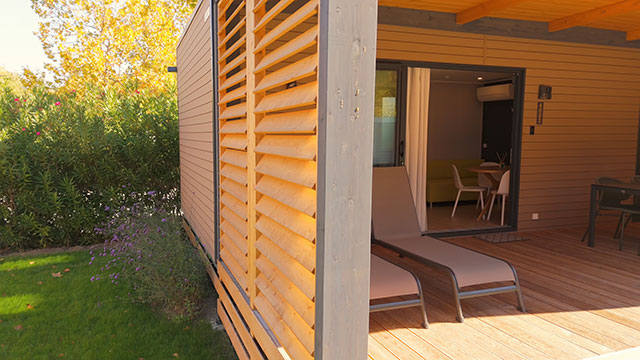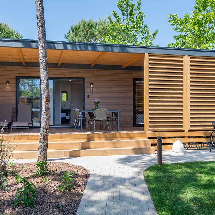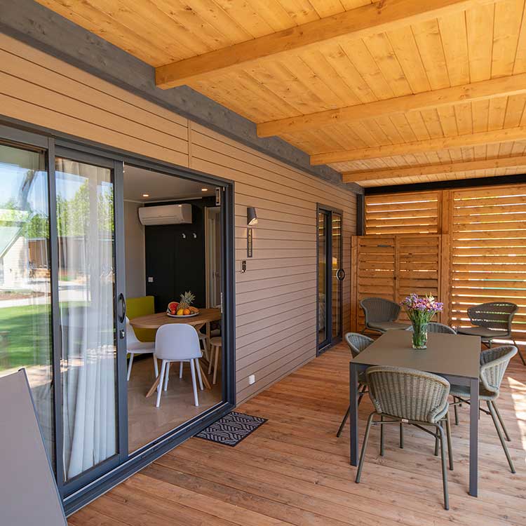 I lodge non hanno il giardino recintato e la veranda non è chiudibile. Se desideri un alloggio con veranda chiudibile, ti consigliamo i Bungalow Prestige o i Mobilhome Premium, dotati di veranda con cancellino, perfetti anche per gli amici a 4 zampe.