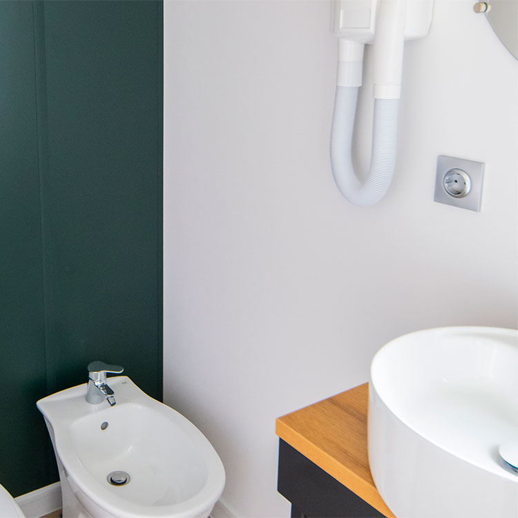 I bagni dei nostri lodge sono comprensivi di tutti i sanitari (bidet, wc e lavandino). In caso di doppio bagno, il bidet è previsto in uno dei due.